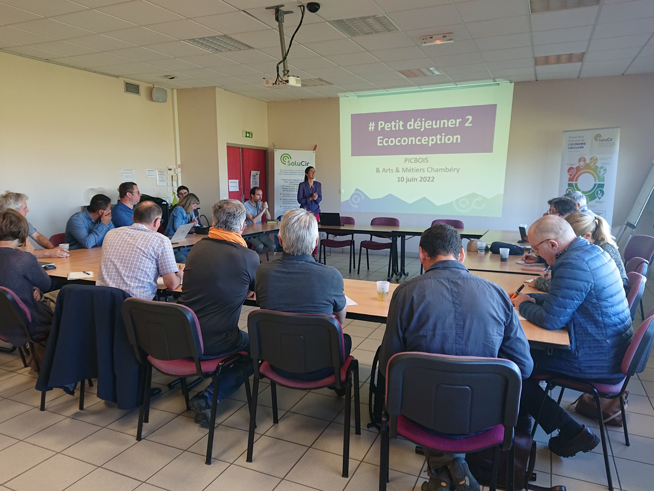 Pour échanger sur le sujet, SOLUCIR avait convié 2 experts du sujet : Joachim Jusselme, ingénieur écoconception aux Arts & Métiers Chambéry et Bruno Chataignon, dirigeant de l’entreprise PICBOIS, fabricant de signalétique touristique et mobiliers de loisirs. Nous avons été accueillis à Belmont Tramonet, au Syndicat Mixte de l’Avant-pays savoyard.