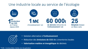 Ces déchets, destinés initialement à l’enfouissement, deviennent ainsi des CSR qui servent principalement pour les cimenteries, comme VICAT localement. Ces derniers substituent ainsi aux énergies fossiles carbonées pour alimenter leurs fours qui montent à 2000°C !